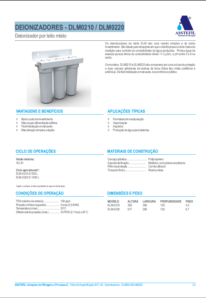 | DEIONIZADORES - DLM0210 / DLM0220 |