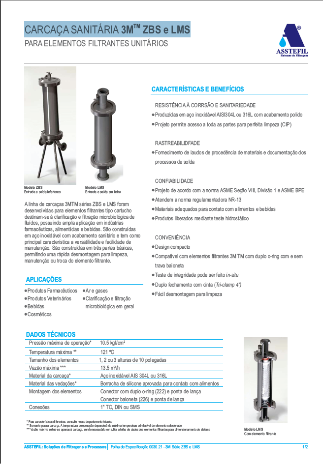 CARCAÇA SANITÁRIA 3M ZBS e LMS |