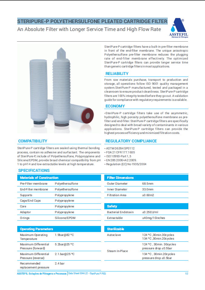 STERIPURE-P POLYETHERSULFONE PLEATED CARTRIDGE FILTER |