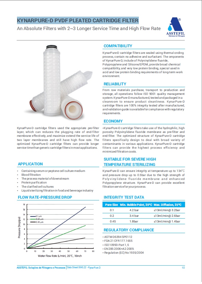 KYNARPURE-D PVDF PLEATED CARTRIDGE FILTER |