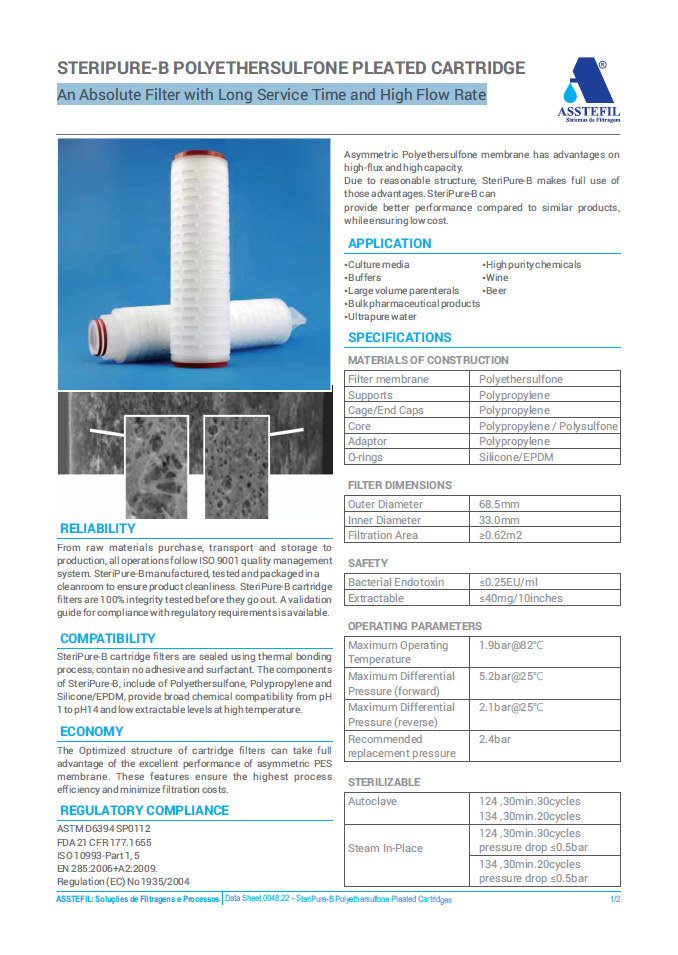 STERIPURE-B POLYETHERSULFONE PLEATED CARTRIDGE