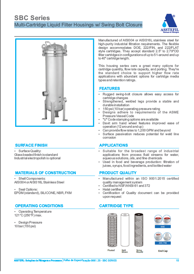 Multi-Cartridge Liquid Filter Housings w/ Swing Bolt Closure
