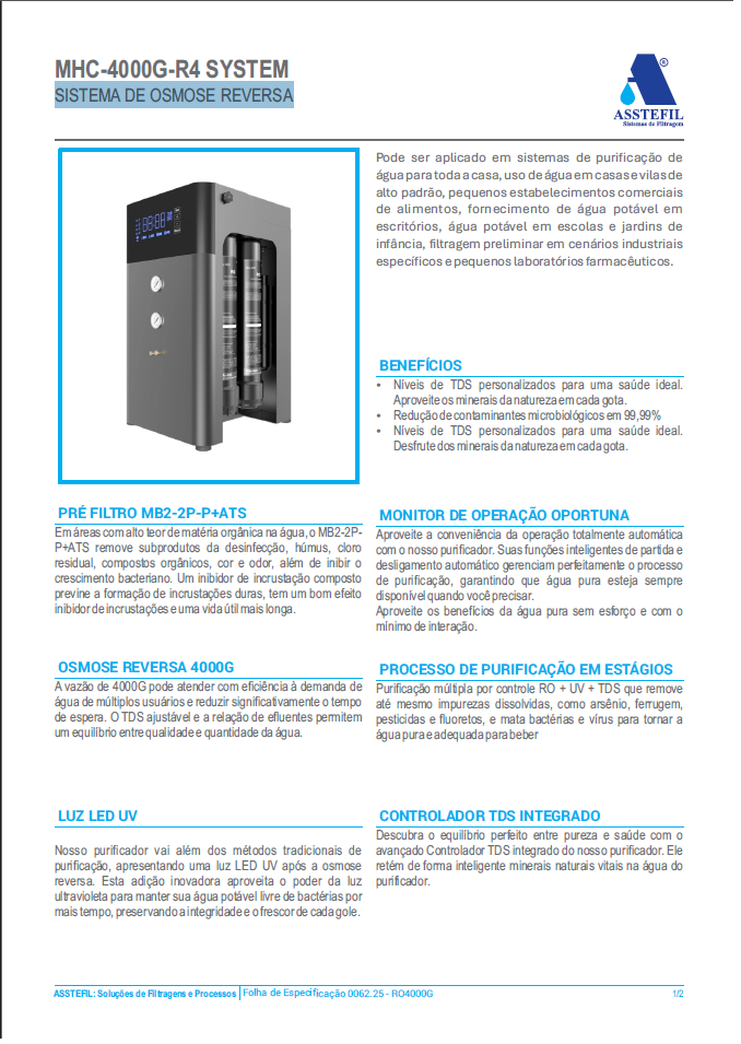 PURIFICADOR DE ÁGUA POR OSMOSE REVERSA